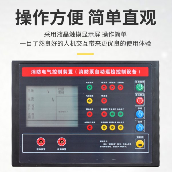 功能规范:巡检柜必须具备自动巡检、手动巡检、故障报警、消防联动切换四大核心功能。自动巡检需采用低频无压巡检方式,单台水泵巡检时间不低于 2 分钟,巡检过程中不得对管网产生压力;手动巡检功能需支持单台水泵独立检测,方便运维人员针对性排查故障;故障报警需具备声光提示与数据存储功能,故障记录保存时间不少于 1 年;消防联动时,巡检柜需在 3 秒内退出巡检,切换至消防运行模式,确保水泵快速启动。
